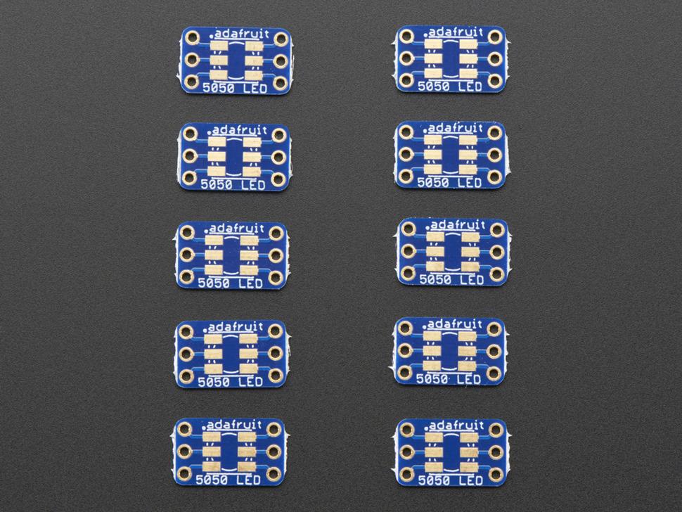 Denna kretskortsuppsättning för 5050 LED-lampor förenklar din prototypframställning genom att möjliggöra snabb och enkel integration av 5050-stora lysdioder i lödfria kopplingsdäck. Löd bara fast din lysdiod på endera sidan och montera den på valfritt kopplingsdäck för omedelbar användning.