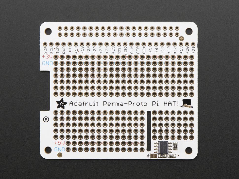 Skapa anpassad elektronik med det mångsidiga prototyp-HAT-kitet för Raspberry Pi . Med en Perma-Proto-inspirerad design erbjuder det ett rutnät med 0,1-tums prototyplödhål för att säkert fästa komponenter som chips, motstånd, lysdioder och potentiometrar.