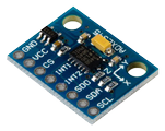 ADXL345 accelerometern är en liten och ekonomisk sensor med hög upplösning (13-bitars) som kan mäta en acceleration på upp till ± 16g. Modulen kan adresseras via I2C- eller SPI-protokollet och kan matas med en spänning mellan 3V och 5V.