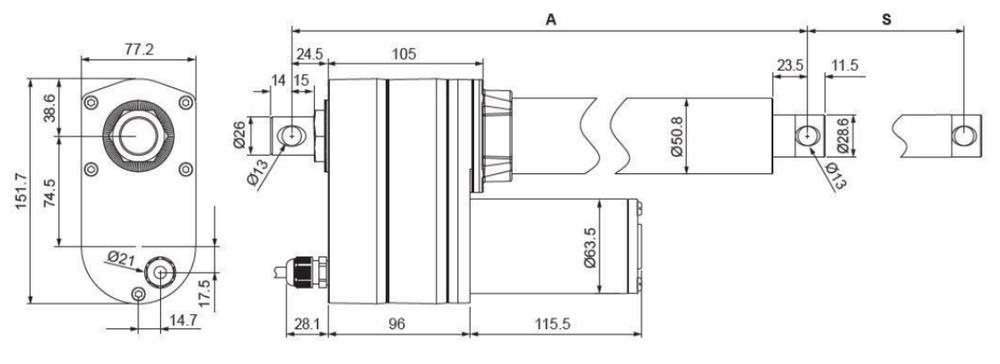 Den här 12V industriella linjäraktuatorn, utrustad med en acme skruvdrift, lyfter enkelt laster upp till 250 kgf (550 lbs eller 2500 N) och klarar statiska laster upp till 450 kgf (1000 lbs eller 4500 N).