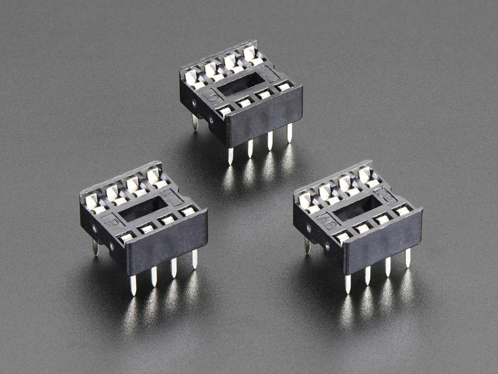 En IC-sockel gör det enkelt att sätta in och ta bort chip från ihopmonterade kit eller projekt. Det här paketet innehåller tre 8-pinnars varianter som är 0.3" breda, perfekta för chip med 8 pinnar (2x4) och 0.3" pinavstånd.