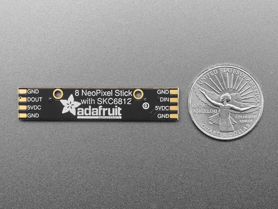 Specifikationerna inkluderar en tunn design tack vare interna drivkretsar, en 18mA konstantströmsdrivare för jämn färg och drift med 5VDC (med ett intervall på 4–7V). Kedjekoppla enkelt flera pinnar med dess unika kedjade design.