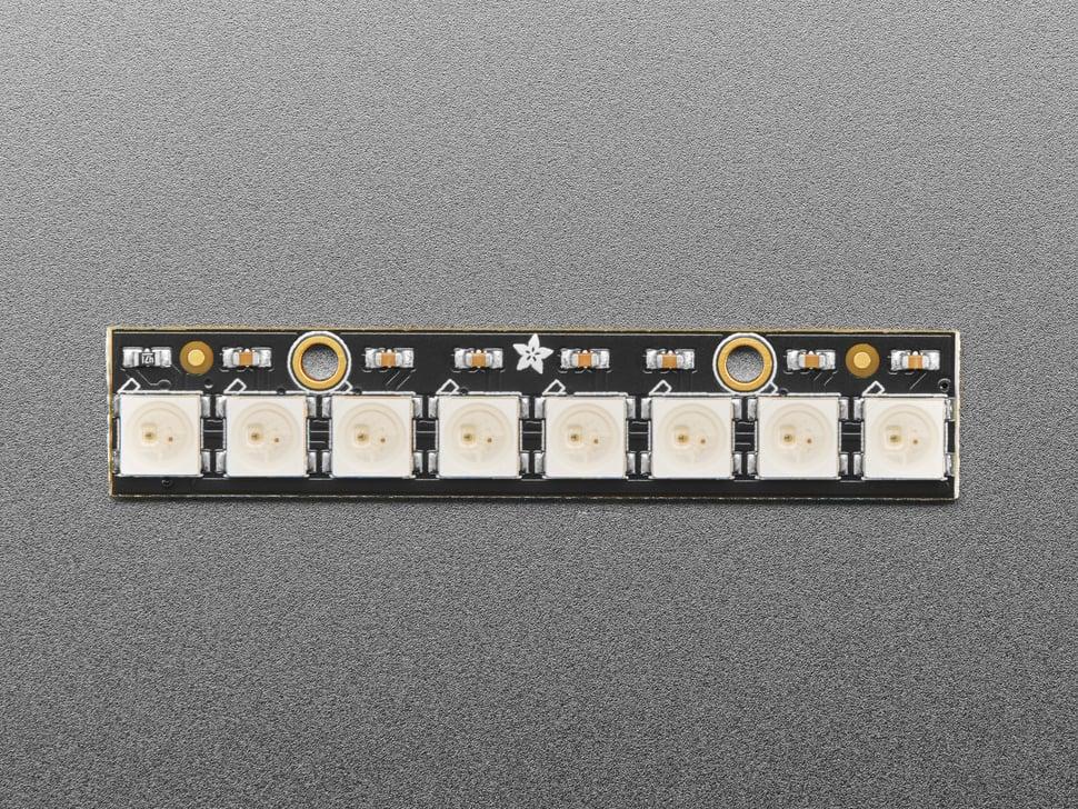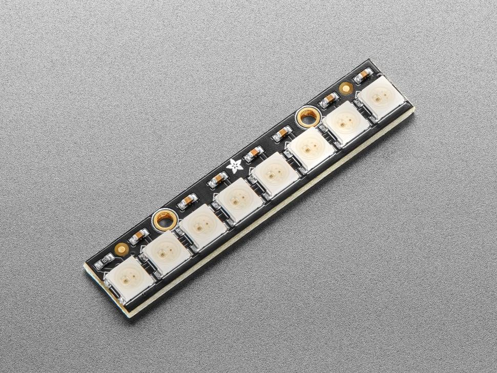 Skapa fantastiska visuella displayer med NeoPixel LED Stick, som har 8 kompakta 5050 RGB-lysdioder med integrerade drivrutiner. Varje lysdiod är individuellt adresserbar, vilket möjliggör exakt kontroll och sömlösa övergångar.