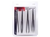 Denna uppsättning av icke-ledande pincett innehåller 4 pincett med olika ben och fördelar. Pincetten är gjord av ett icke-ledande material, vilket gör dem ESD-säkra.